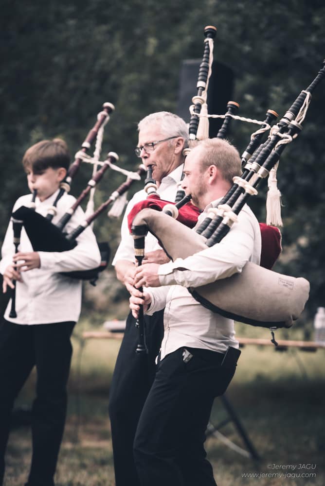 Nous utilisons principalement la cornemuse, la bombarde, les caisses claires et les percussions pour nos compositions.