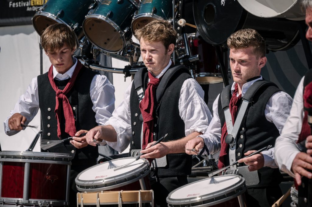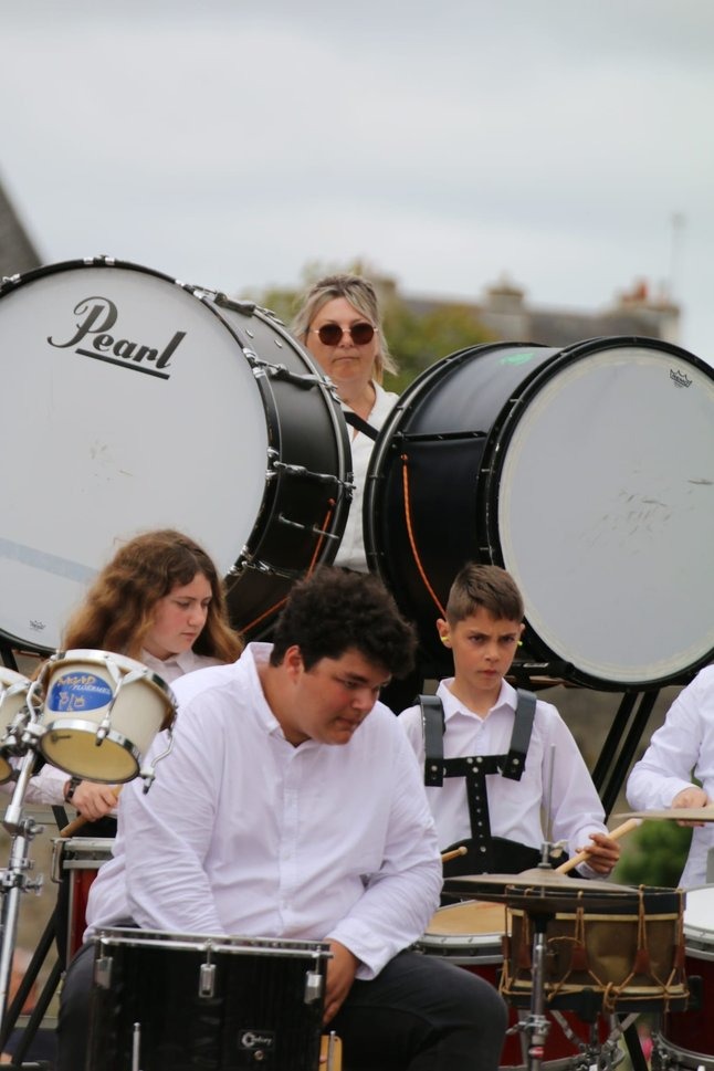 Les percussions forment la base rythmique du bagad. Elles regroupent les caisses claires écossaises, les toms, les basses et parfois les percussions légères comme le tambourin ou les cymbales. Ensemble, elles structurent le tempo, soutiennent les bombardes et cornemuses, et donnent toute la puissance et la cohésion au son du groupe.